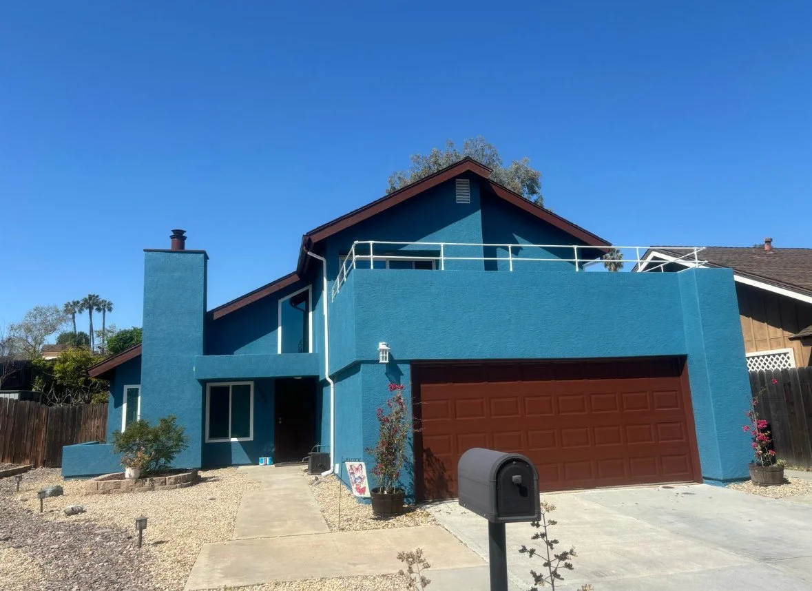 Another transformation complete! We replaced damaged wood, repaired the stucco, primed the entire exterior, and brought this home to life with a bold and beautiful blue finish. Grateful to work with amazing homeowners who trust us to get the job done right!